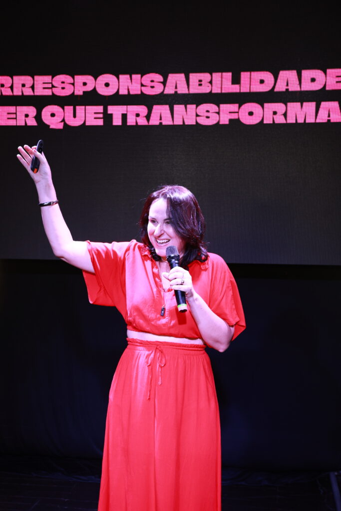 Rafaela Perensin convidou cada pessoa da plateia a refletir sobre qual palavra será o eixo de suas próximas decisões. Uma palestra que se conecta muito com seu último livro publicado, “Uma Palavra por Ano”, uma obra que propõe um caminho de clareza e intencionalidade para o leitor.
